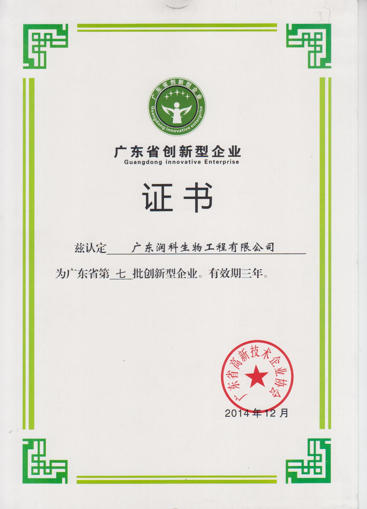 ???????潤科生物是擁有核心自主知識產(chǎn)權(quán)、持續(xù)創(chuàng)新能力和行業(yè)帶動(dòng)性強(qiáng)的企業(yè),2014年12月,省級六部門公布第七批廣東省創(chuàng)新型企業(yè)通過名單。潤科生物再立潮頭,繼續(xù)引領(lǐng)全省企業(yè)創(chuàng)新發(fā)展!