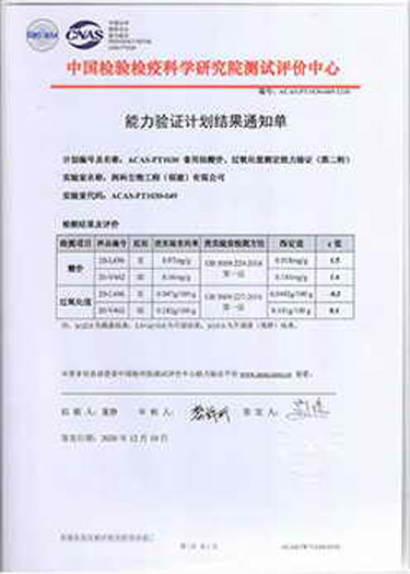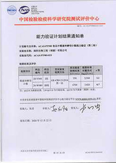 ? ? ? ?潤(rùn)科生物中心實(shí)驗(yàn)室檢測(cè)水平不斷提升,積極參加中國(guó)檢驗(yàn)檢疫科學(xué)研究院測(cè)試評(píng)價(jià)中心開展的能力驗(yàn)證計(jì)劃,累計(jì)已參與了菌落總數(shù)、黃曲霉毒素B1、鉛、大腸菌群、酸價(jià)、過氧化值、霉菌和酵母計(jì)數(shù)等多項(xiàng)指標(biāo)檢測(cè)能力驗(yàn)證,驗(yàn)證評(píng)價(jià)結(jié)果均為滿意。