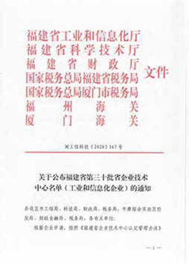 我司獲 “福建省企業(yè)技術(shù)中心”榮譽(yù)稱號(hào)