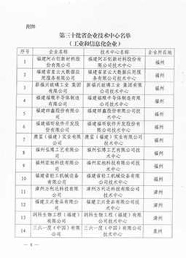 2020年12月24日由福建省工業(yè)和信息化廳、福建省科學(xué)技術(shù)廳、福建省財(cái)政廳、國家稅務(wù)總局福建省稅務(wù)局、國家稅務(wù)總局廈門市稅務(wù)局、福州海關(guān)、廈門海關(guān)認(rèn)定潤科生物工程(福建)有限公司技術(shù)中心為“福建省企業(yè)技術(shù)中心”。